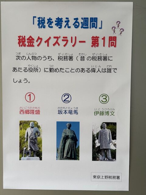 令和7年11月8日 税務六団体等 共催 「上野公園クイズラリー」 2025年11月18日 令和7年11月8日 上野恩賜公園 ポケットパークにて 税務六団体等 共催 「上野公園クイズラリー」 が開催されました! クイズの出題は5問あり、全問正解する方もいらっしゃいました! 「重さを体験してみよう!1億円」では重さに驚きました! たくさんの笑顔に包まれ、税を身近に考えるとても有意義なひとときとなりました。 ご参加くださった皆さまから「知らなかった!」「楽しかった!」という声も多く寄せられました! ご来場いただいた皆さまに深く御礼申し上げます!